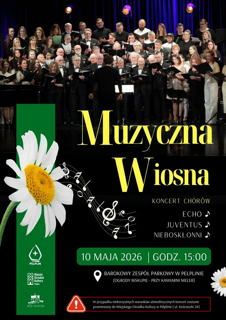 10 maja 2026 roku, w niedzielę, o godz. 15:00 w Ogrodach Biskupich w Pelplinie wystąpią trzy tczewskie chóry - Echo, Juventus i Nieboskłonni. To właśnie one mają zbudować program, który nie idzie jedną ścieżką, tylko miesza nastroje i muzyczne smaki.