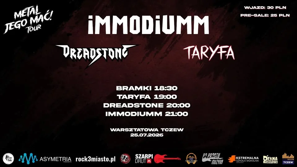 iMMODiUMM x Dreadstone x Taryfa w Tczewie — metalowy wieczór w Warsztatowej 25 lipca 2026