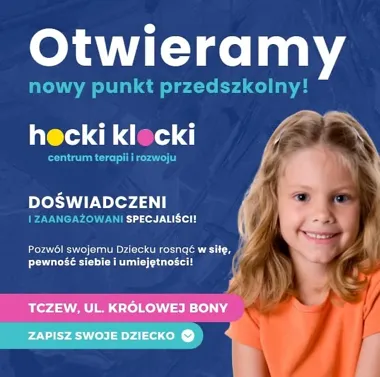 W Tczewie od stycznia 2026 roku rozpocznie działalność drugi Punkt Przedszkolny Hocki Klocki. Placówka została zaprojektowana z myślą o dzieciach w wieku przedszkolnym, także tych wymagających specjalnego wsparcia rozwojowego, m.in. z zaburzeniami ze spektrum autyzmu czy zespołem Aspergera. Organizatorzy podkreślają indywidualne podejście, zespołu specjalistów oraz kameralne, bezpieczne warunki pracy z dziećmi.